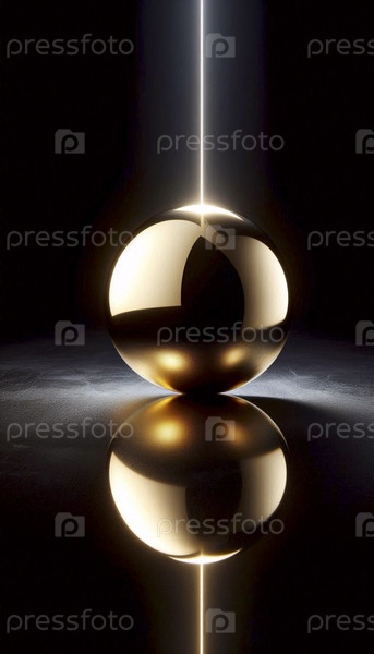 Мокет полированной твердозолотой сферы, опирающейся на обширную плиту из абсолютного черного гранита под одним точным проектором, Ай создал изображение