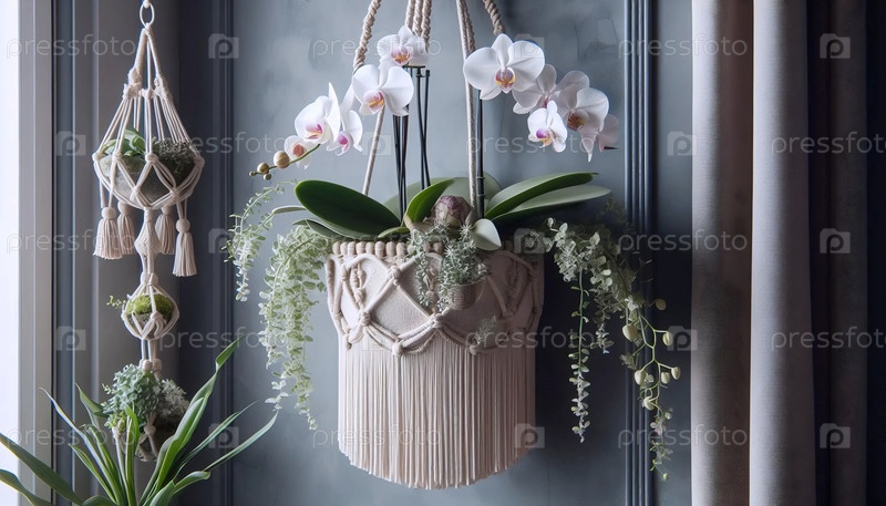 Орхидея в висящем плантаторе, Ai generated image