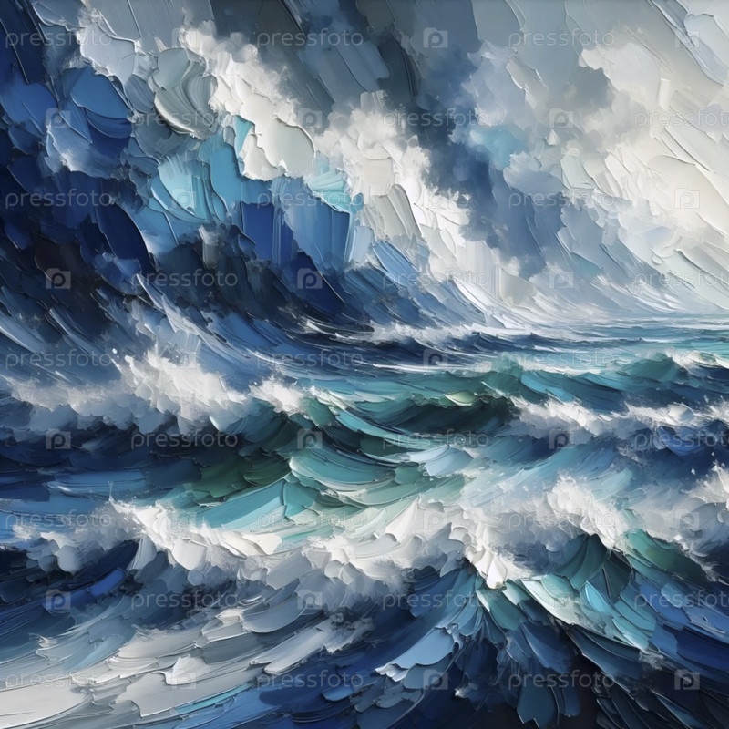Текстильная масляная живопись океанских волн, Ai generated image A