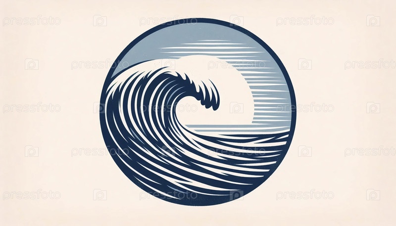 Винтажный минималистический печатный принт океанских волн, Ai generated image