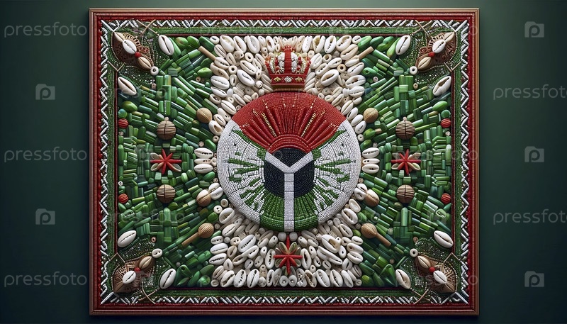 Нигерийский флаг в традиционной бусинке и искусстве йорубы, Ai generated image