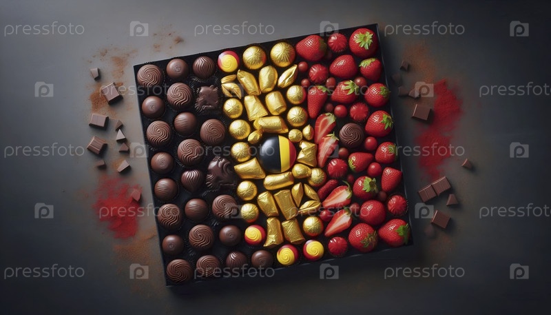 Бельгийский флаг в ассортименте шоколадных пралин, Ai generated image