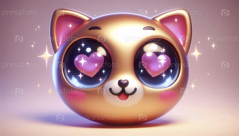 3D симпатичный кошачий эмодзи с глазами сердца, Ai generated image A