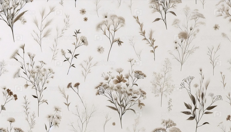 Мягкий бежевый цветочный бесшовный рисунок, Ai generated image