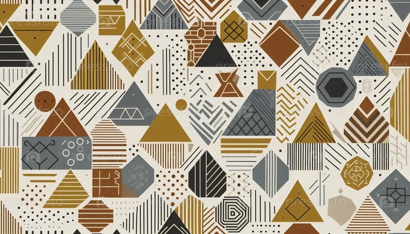 Абстрактный геометрический шаблон бохо с бесшовным дизайном, Ai generated image