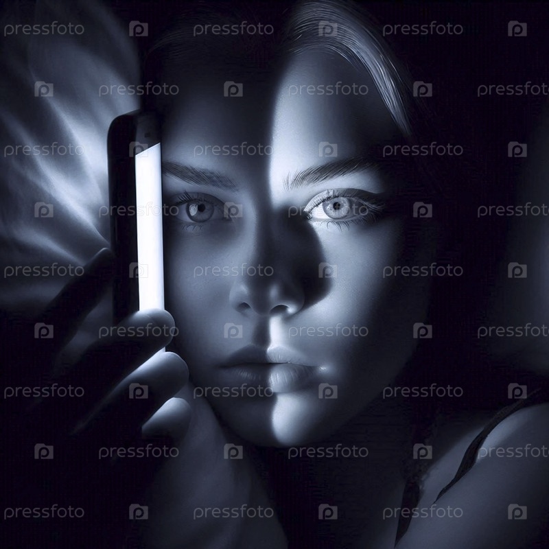 Лицо, полуосвещенное светом смартфона, Ай создал изображение
