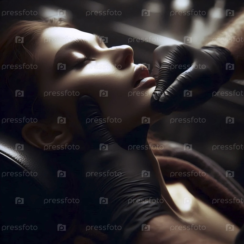 Более широкий снимок показывает актрису, опирающуюся на спину в кресле, сдаваясь процессу, Ай создал изображение