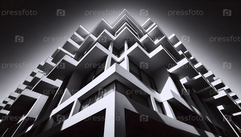 Черно-белый фотографический принт современной архитектуры середины века, Ai generated image