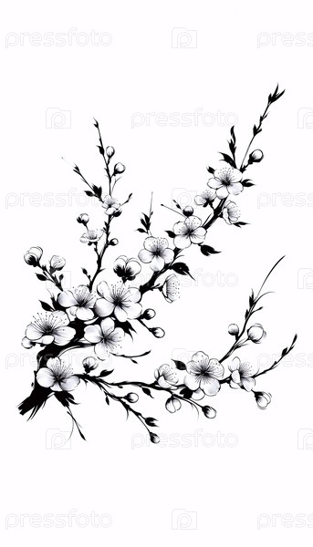 Вишневый цветок ветви линейного искусства, Ai generated image