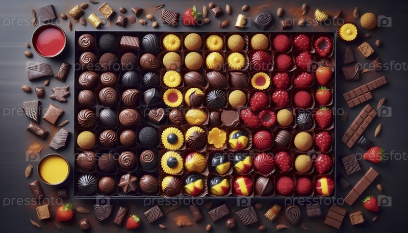 Бельгийский флаг в ассортименте шоколадных пралин, Ai generated image