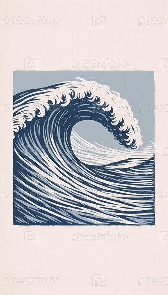 Винтажный минималистический печатный принт океанских волн, Ai generated image