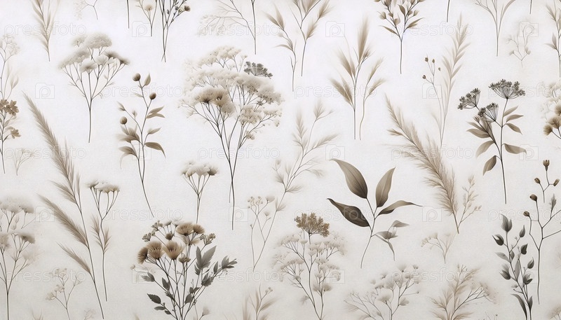 Мягкий бежевый цветочный бесшовный рисунок, Ai generated image