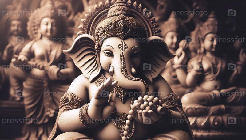 Господь Ганеша с молитвенными бусинами, Ai generated image A