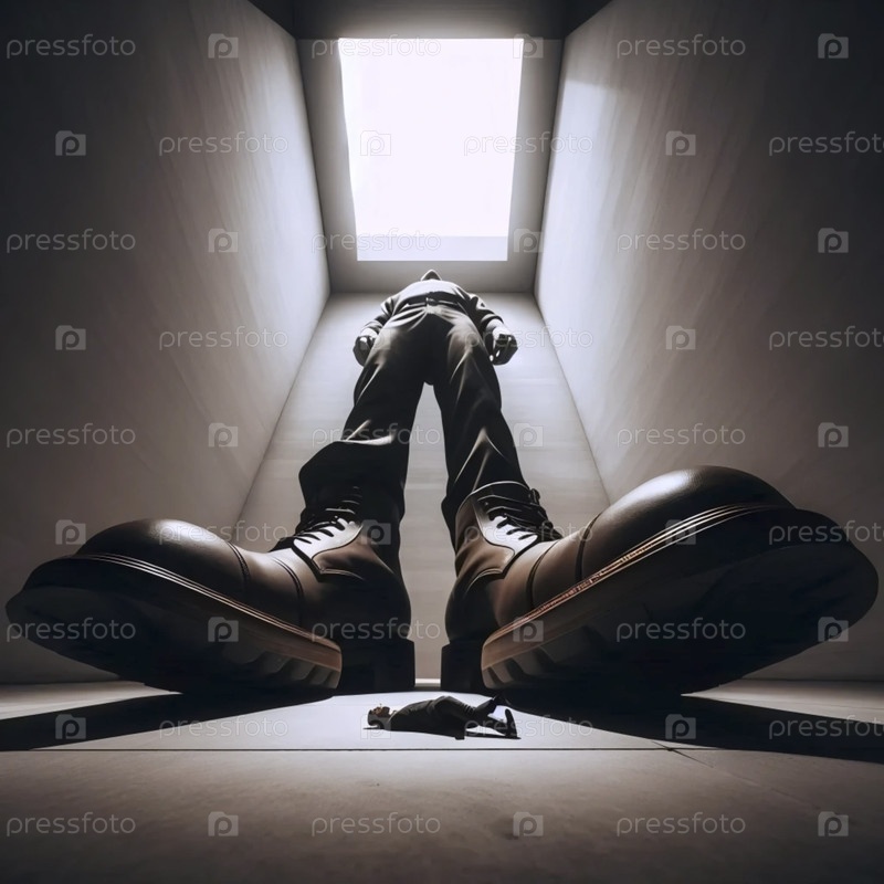 Драматический снимок низкого угла, придающий обуви монументальное присутствие, Ай создал изображение