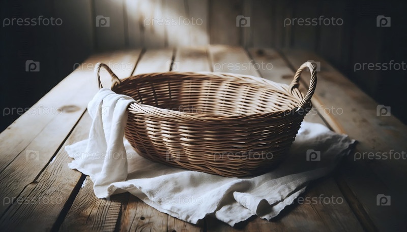 Пустой, овальный макет корзины хлеба из плесени с льняной оболочкой на столе фермы Ai generated image