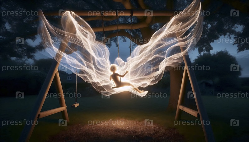 Фотография с длительным воздействием ребенка на качелях в сумерках, Ai generated image