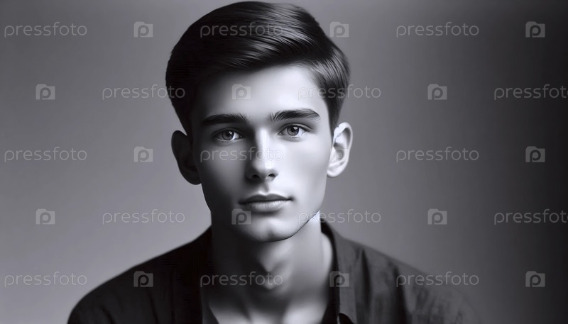 Классический портрет молодого человека с короткой стрижкой, Ai generated image