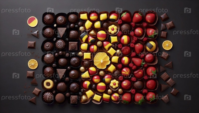 Бельгийский флаг в ассортименте шоколадных пралин, Ai generated image