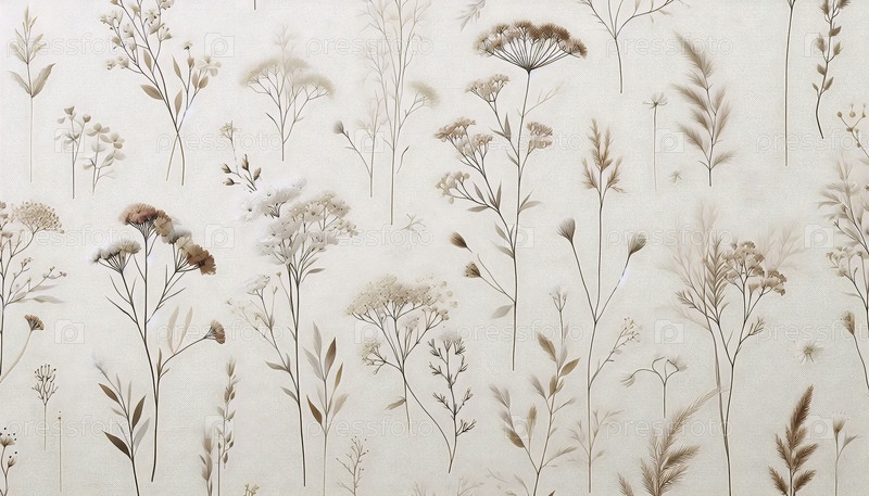 Мягкий бежевый цветочный бесшовный рисунок, Ai generated image
