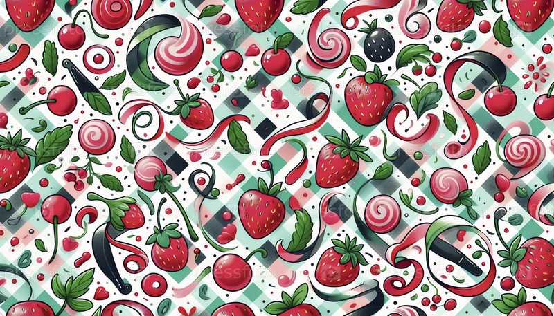 A Fruits Ribbon Fun abstract check cherry pattern, Ai generated image Фруктовая лента Забавный абстрактный образец чека вишневого цвета