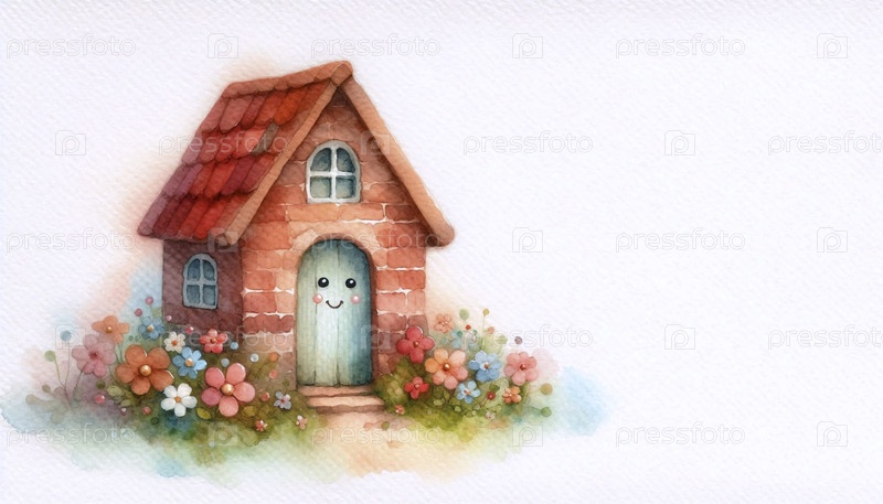 Дружеский дом акварельный арт-принт, Ai generated image A