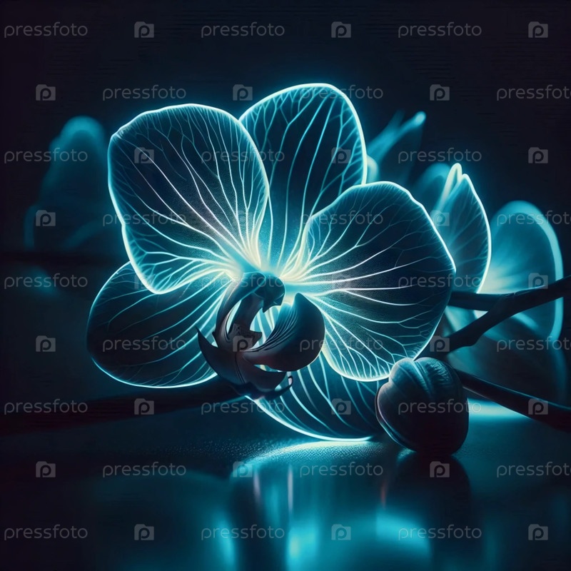 Орхидея с неоновым светом, Ai generated image
