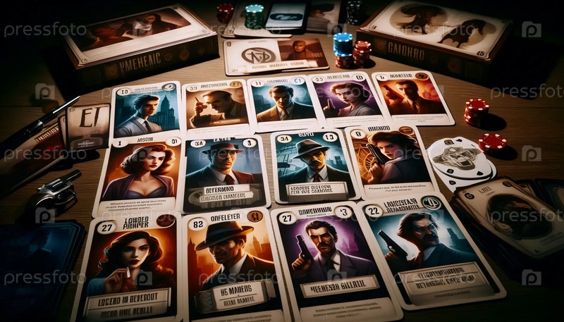 Мафиозная игра с картами персонажей, Ai generated image