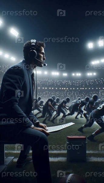 Более широкий кинематографический снимок окружающей среды, сделанный на хаотичной боковой линии стадиона во время финальной игры, Ai создал изображение