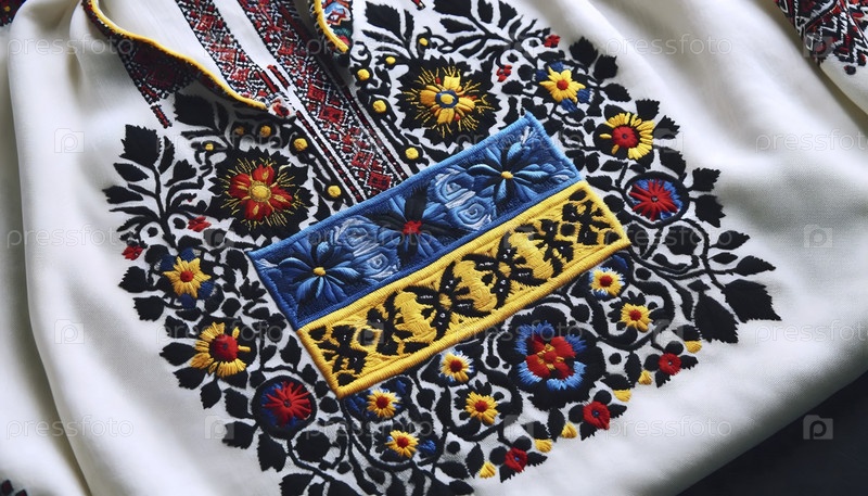 Украинский флаг в традиционной вышивке vyshyvanka art, Ai generated image
