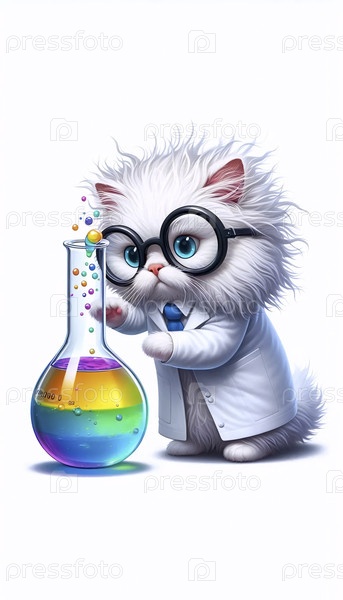 Безумный ученый кот в наклейке для лабораторного пальто, Ai generated image
