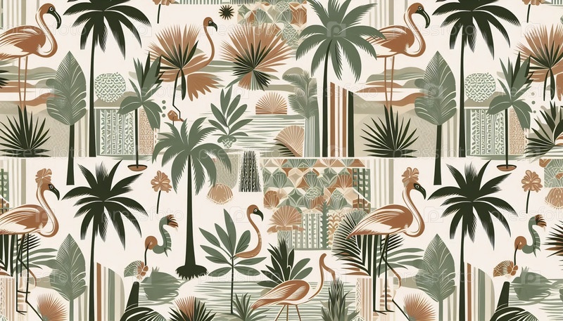 Ретро Palm Toile шаблон бесшовный дизайн, Ai generated image