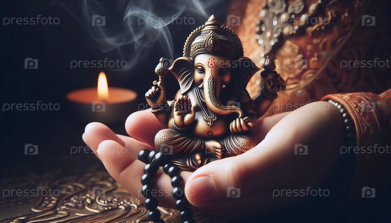 Господь Ганеша с молитвенными бусинами, Ai generated image A