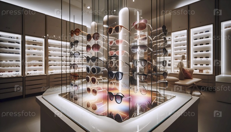 Современная стена для отображения солнцезащитных очков, Ai generated image