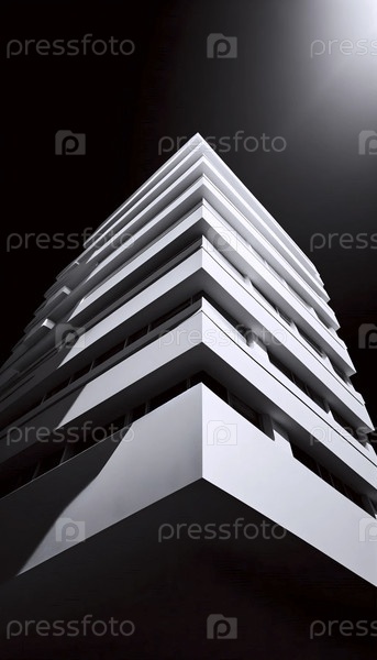 Черно-белый фотографический принт современной архитектуры середины века, Ai generated image