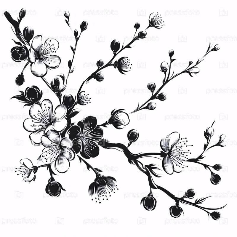 Вишневый цветок ветви линейного искусства, Ai generated image