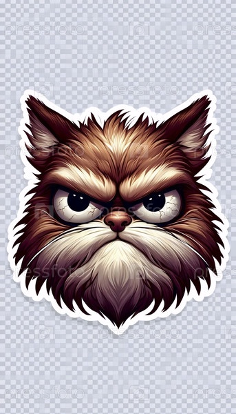 Разгневанный кот с наклейкой со скошенными бровями, Ai generated image