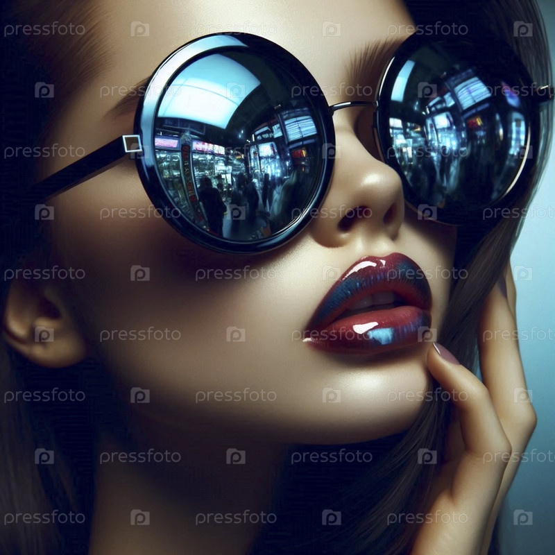Портрет, скрытый за огромными овальными солнцезащитными очками, Ai generated image