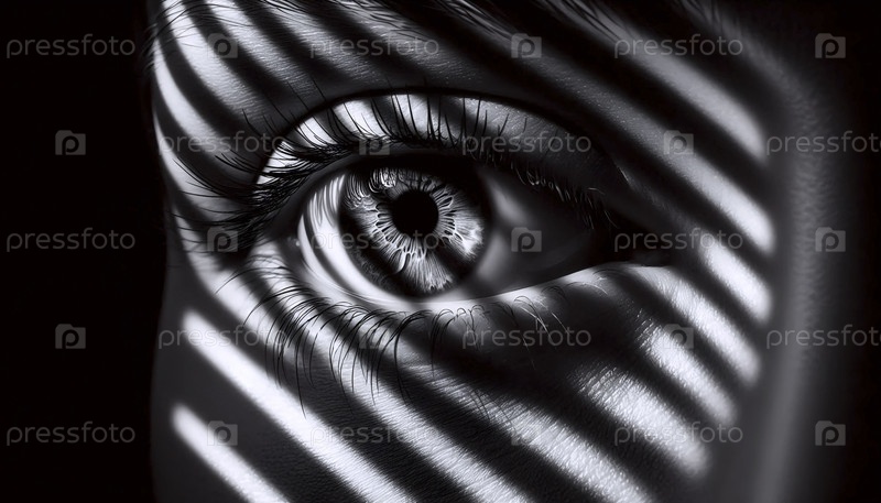 Глаза, отражающие венецианские слепые полосы, Ai generated image