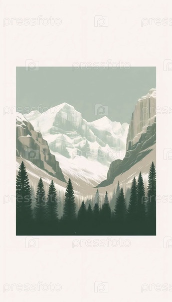 Тихий пейзаж горный принт, Ai generated image