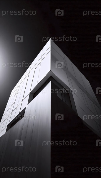 Черно-белый фотографический принт современной архитектуры середины века, Ai generated image