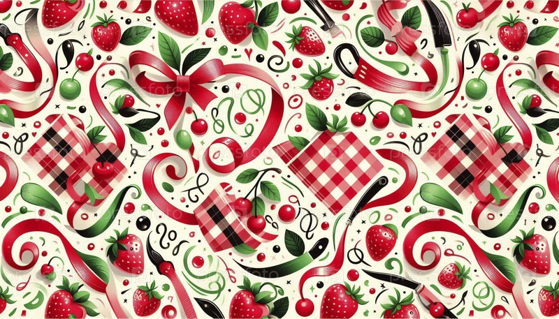 A Fruits Ribbon Fun abstract check cherry pattern, Ai generated image Фруктовая лента Забавный абстрактный образец чека вишневого цвета