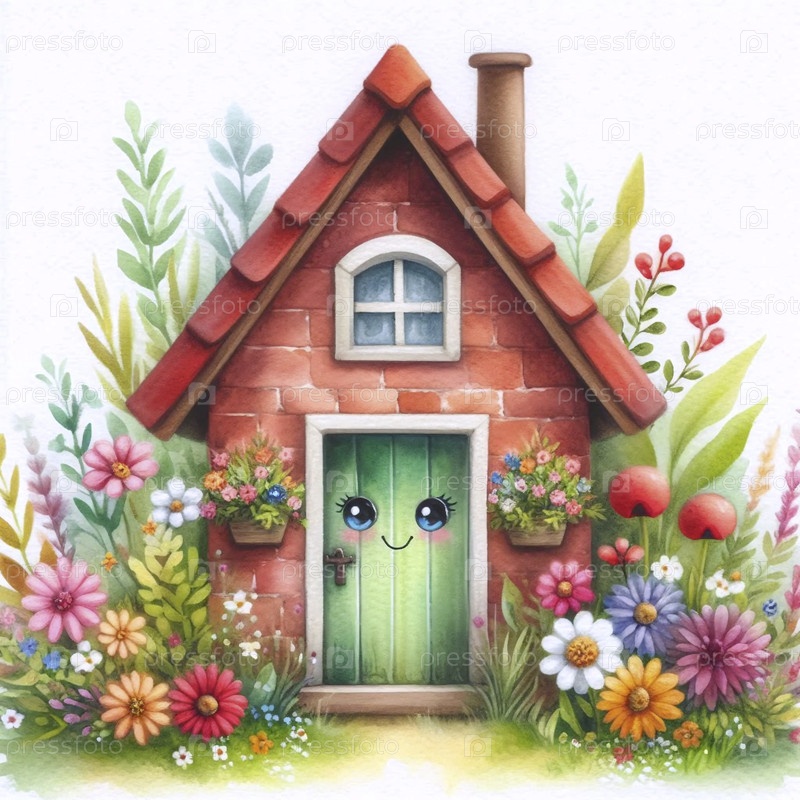 Дружеский дом акварельный арт-принт, Ai generated image A
