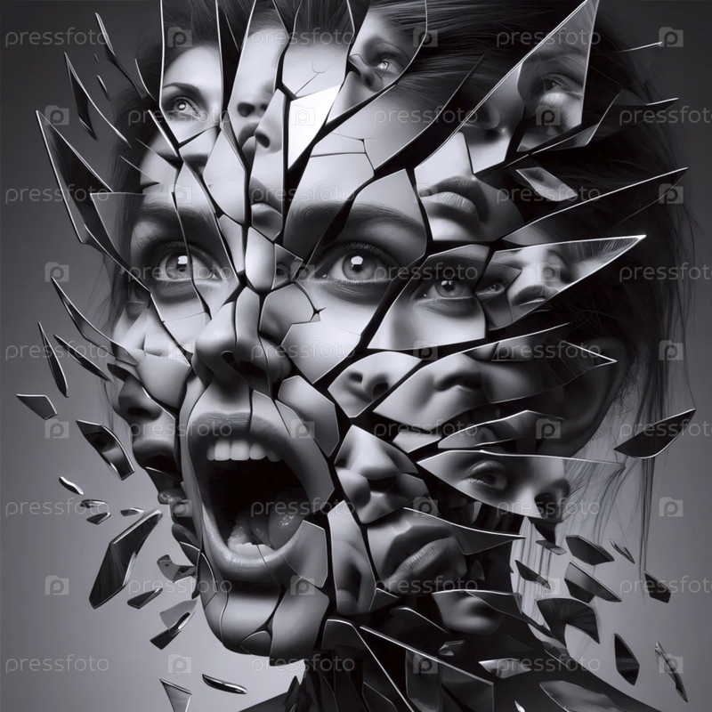 Сюрреалистическое отражение в разбитых зеркалах, Ai generated image