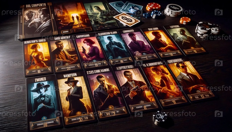 Мафиозная игра с картами персонажей, Ai generated image