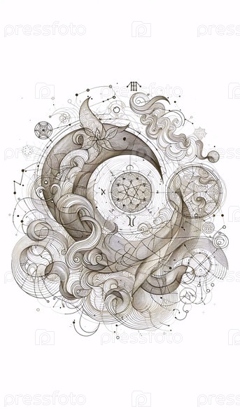 Художественное произведение из тонких линий священной геометрии, Ai generated image