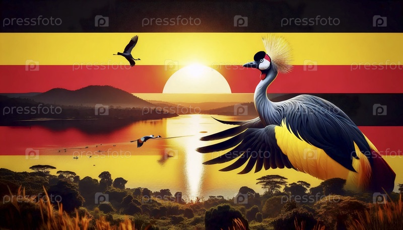 Флаг Уганды у истоков Нила и озера Виктория, Ai generated image