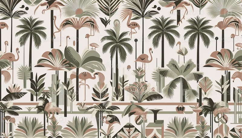 Ретро Palm Toile шаблон бесшовный дизайн, Ai generated image