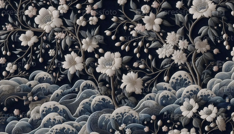 Японский шаблон вышивки с бесшовным дизайном, Ai generated image