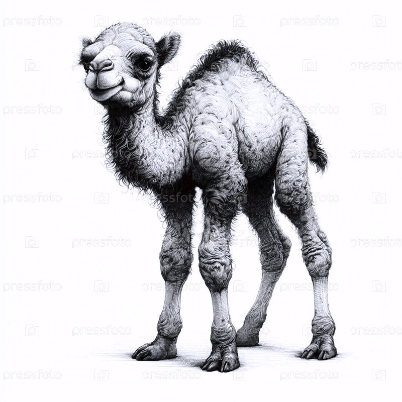 A Camel Calf ink drawing art print, Ai generated image Аи создал изображение