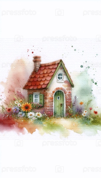 Дружеский дом акварельный арт-принт, Ai generated image A
